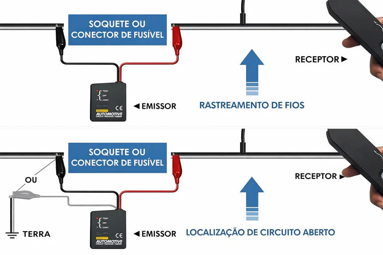 Esta ferramenta é ideal para diagnósticos automotivos. Ela ajuda a encontrar rapidamente curtos-circuitos ou localizar circuitos abertos, enviando sinais através dos cabos, tornando o processo de reparação mais rápido e eficiente.